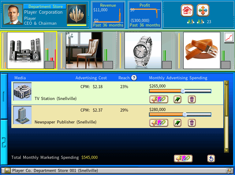 You can now link several media firms to a single built-in advertising unit. After connecting them, simply select any product in your company and use the slider to set its monthly advertising budget.