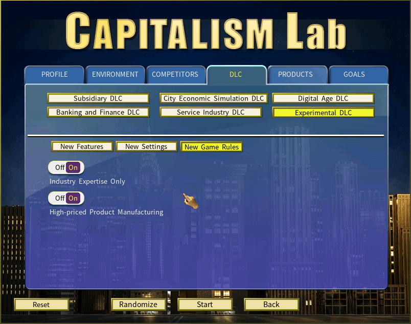 Get Experimental DLC FOR FREE when you own all four of the following DLCs: Subsidiary DLC, City Economic Simulation DLC, Digital Age DLC and Banking and Finance DLC.